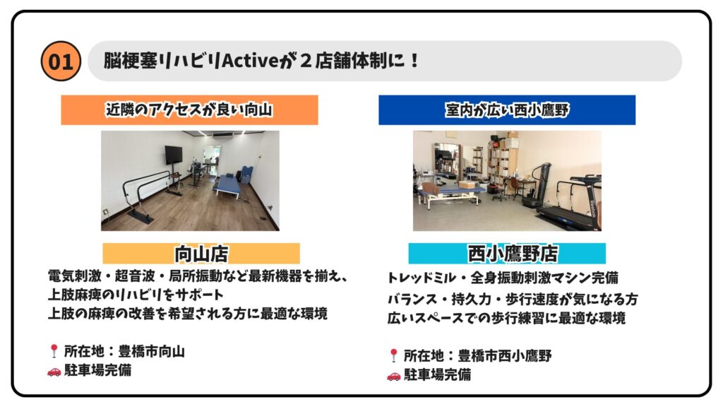 という目標を達成するための専門的なマンツーマンのリハビリを提供しています。