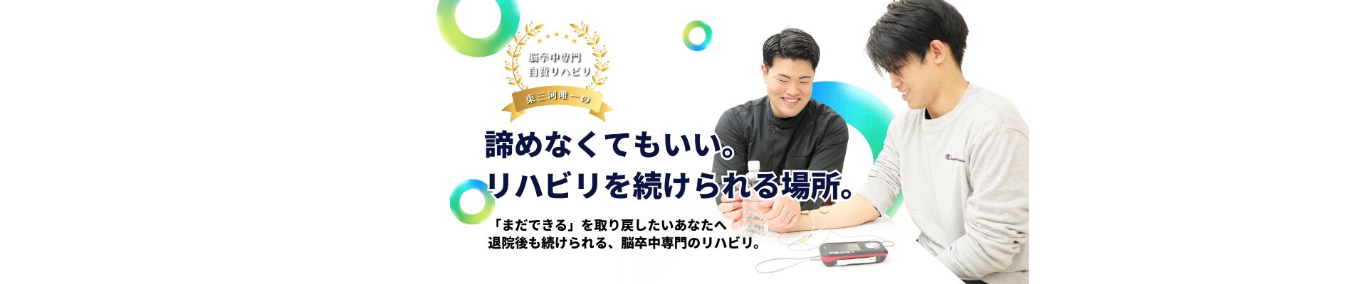 という目標を達成するための専門的なマンツーマンのリハビリを提供しています。