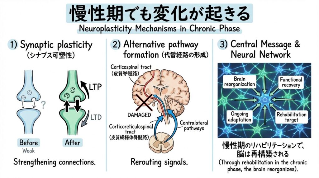 慢性期に変化が生じる根拠として、現在の神経科学研究が示しているのは主に以下の3つのプロセスです。