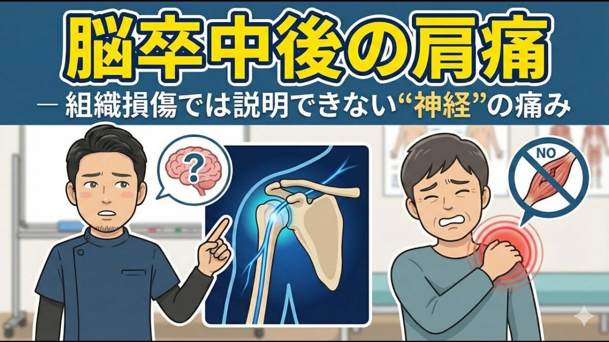 今回は、脳卒中後の肩痛について、最新の研究をもとに「なぜ組織が壊れていないのに痛いのか」「どんなときに神経の痛みを疑うべきか」「その痛みとどう向き合えばいいのか」を、できるだけわかりやすく解説していきます。
